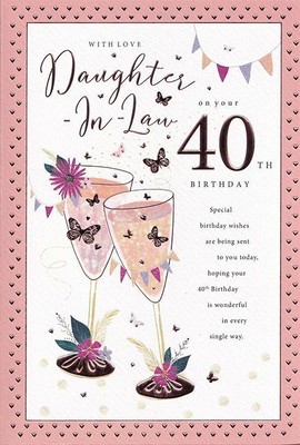 Daughter In Law 40th Birthday Card 40 Champagne Design Happy
